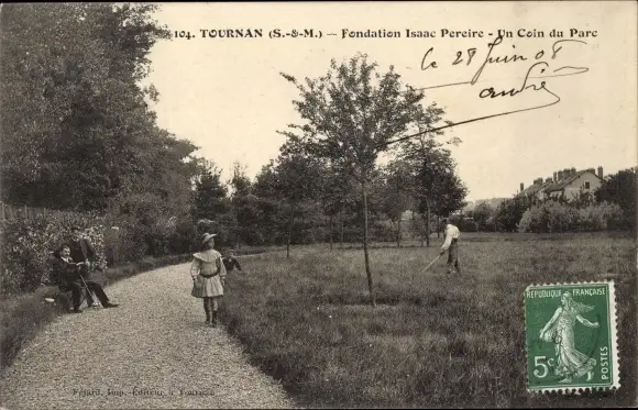 Ak Tournan Seine et Marne, Fondation Issac Pereire, Un Coin du Parc