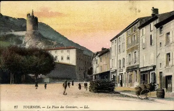 Ak Tournon Ardèche, La Place des Graviers
