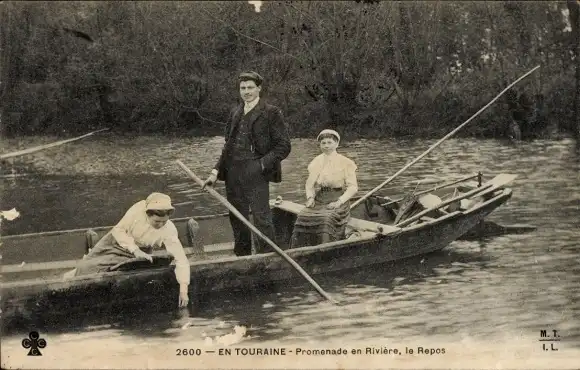 Ak Tours Indre et Loire, Touraine, Mann und zwei Frauen in einem Boot
