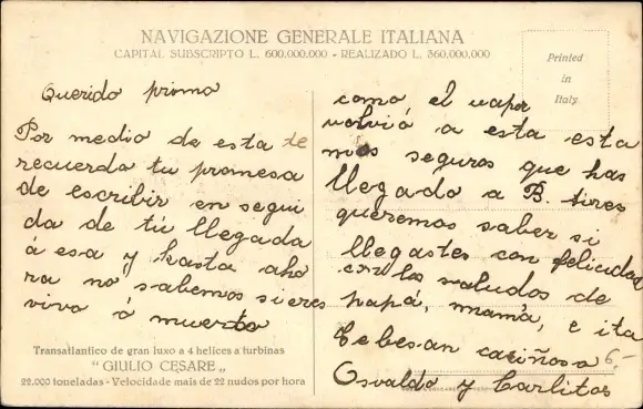 Ak Transatlantico Giulio Cesare, Passagierdampfer, Navigazione Generale Italiana, NGI