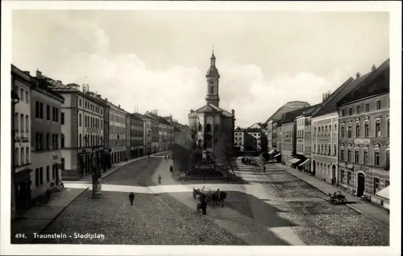 Ak Traunstein Oberbayern, Stadtplatz, Kirche, Geschäfte