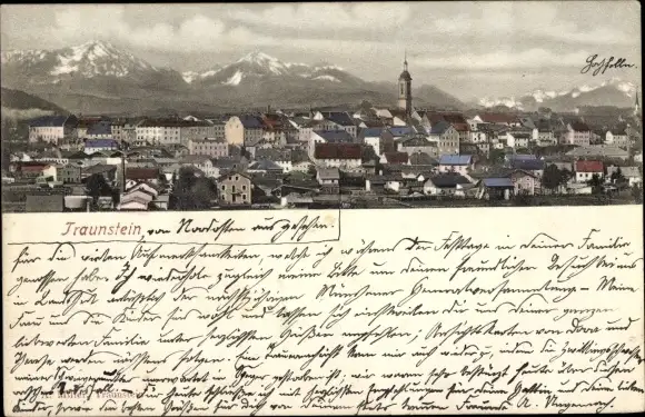 Ak Traunstein in Oberbayern, Gesamtansicht, Kirche