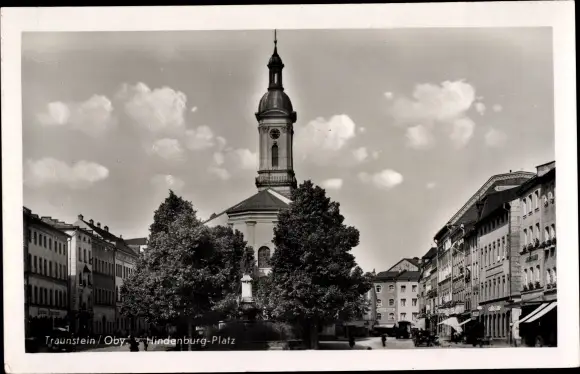 Ak Traunstein in Oberbayern, Hindenburgplatz, Kirche