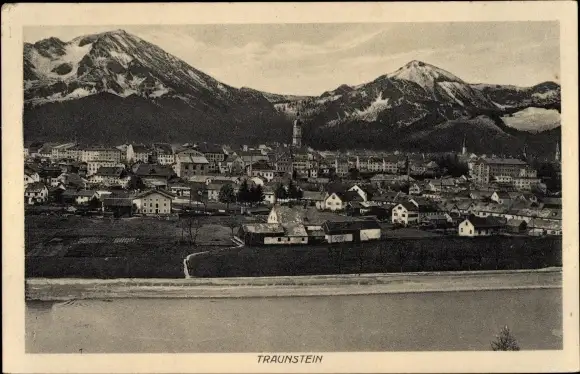 Ak Traunstein in Oberbayern, Kirche, Alpen, Panorama