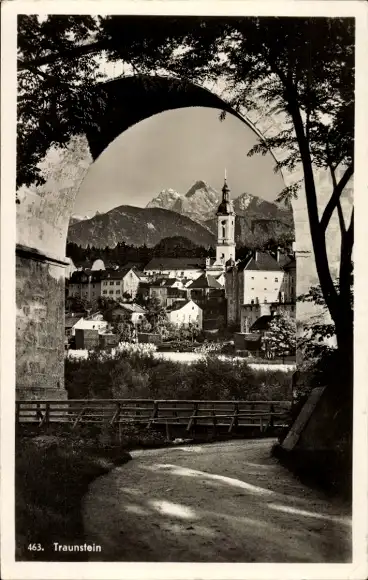 Ak Traunstein in Oberbayern, Teilansicht, Kirche