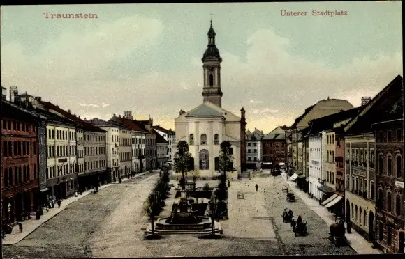 Ak Traunstein in Oberbayern, Unterer Stadtplatz