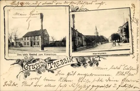 Ak Trebbin im Kreis Teltow Fläming, Gasthof zum Kronprinzen, Marktplatz