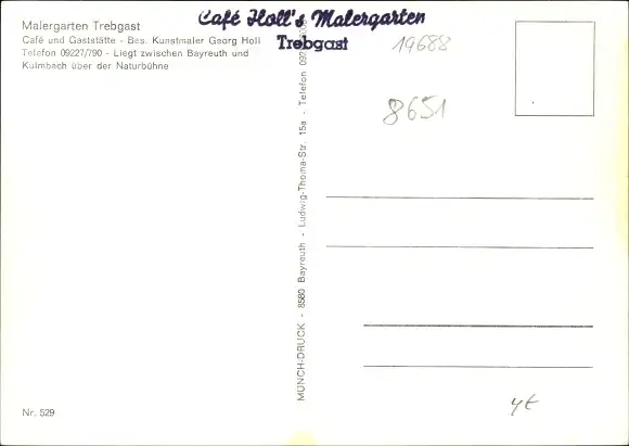 Ak Trebgast in Oberfranken Bayern, Cafe Holls Malergarten