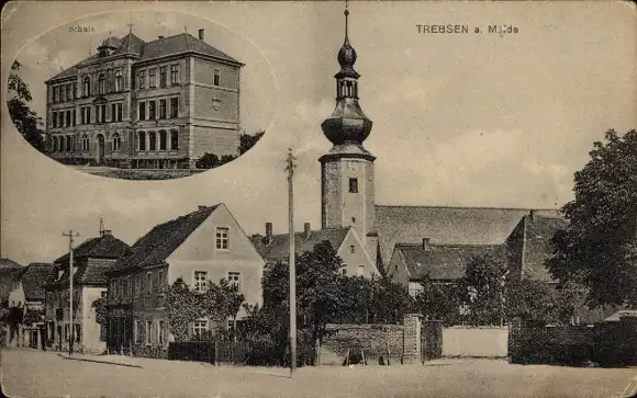 Ak Trebsen an der Mulde Sachsen, Schule, Straßenpartie