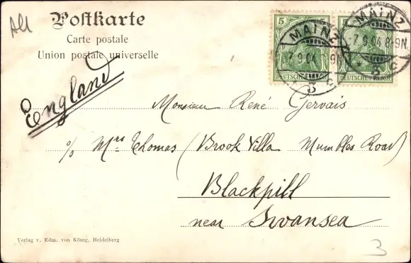 Zustand, siehe Scan, gelaufen, 1904 - ca 9 cm X 14 cm