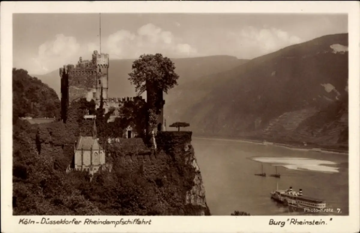 Ak Trechtingshausen am Rhein, Burg Rheinstein, Köln-Düsseldorfer Rheindampfschifffahrt