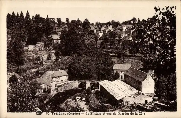 Ak Treignac Correze, La Filature, vue du Quartier de la Cote