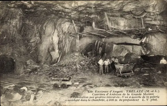 Ak Trélazé Maine et Loire, Carrieres d'Ardoises de la Grande Maison, Exploitation, Vue gauche...