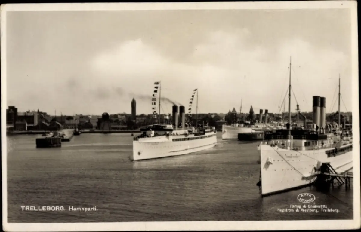Ak Trelleborg Schweden, Hamnparti, Dampfer