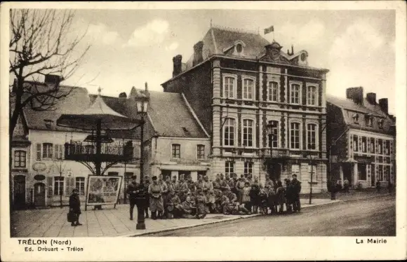 Ak Trelon Nord, La Mairie, Soldaten in Uniform