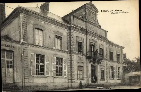 Ak Tréloup Aisne, Mairie et Ecole, D'Asile