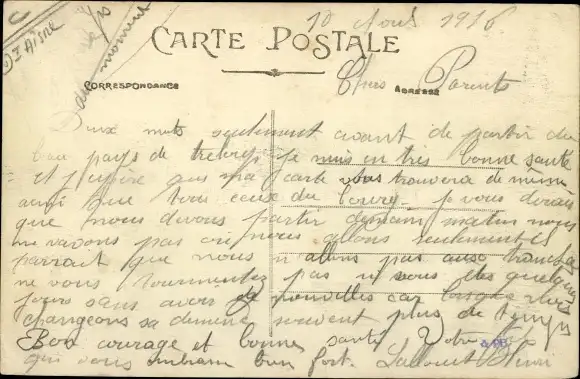 ungelaufen, Rückseite beschrieben, datiert 1916, Eckknick rechts unten, sonst guter Zustand
