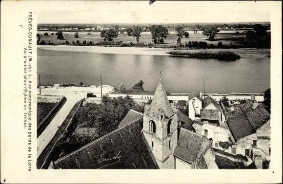 Ak Trèves Cunault Maine et Loire, Vue panoramique des bords de la Loire