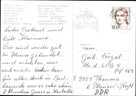 Ak TriStar Lockheed L 1011 1, Deutsches Passagierflugzeug, LTU