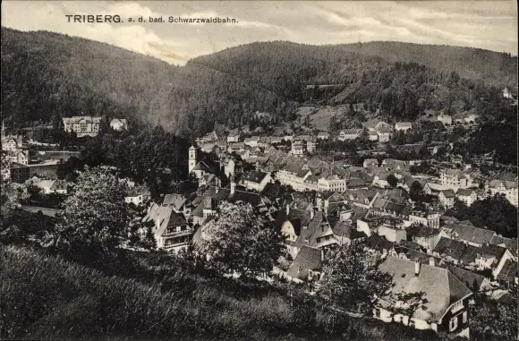 Ak Triberg Schwarzwald, Blick über die Stadt, Kirche