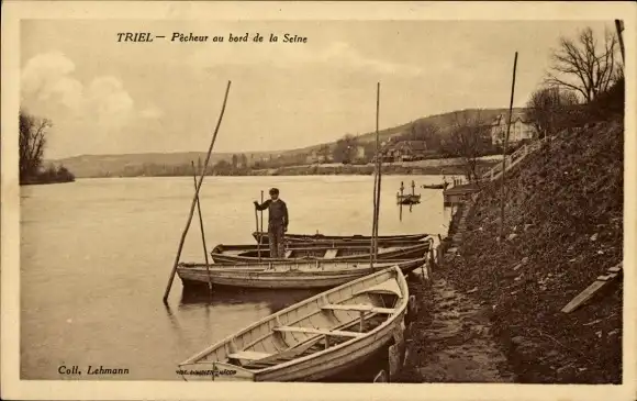 Ak Triel sur Seine Yvelines, Seineufer, Fischer