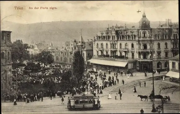 Ak Trier an der Mosel, An der Ports nigra, Tram