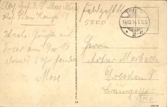 Zustand, siehe Scan, gelaufen, 1914 - ca 9 cm X 14 cm