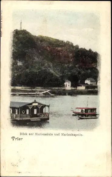 Ak Trier an der Mosel, Mariensäule, Marienkapelle, Boote