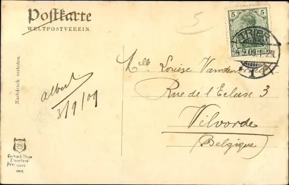 Zustand, siehe Scan, gelaufen, 1909 - ca 14 cm X 9 cm