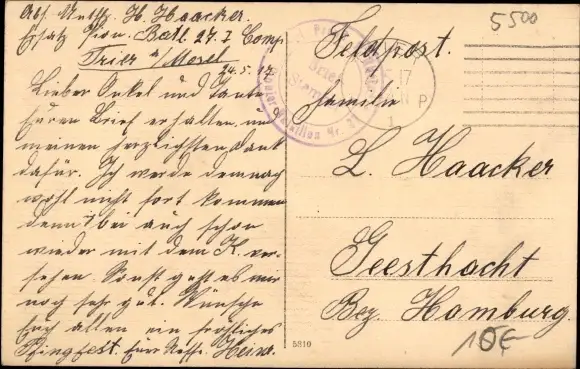 Zustand, siehe Scan, gelaufen, 1917 - ca 14 cm X 9 cm