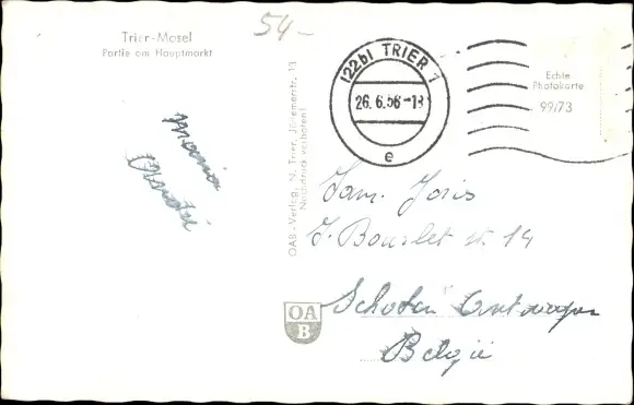 Zustand, siehe Scan, gelaufen, 1956 - ca 9 cm X 14 cm