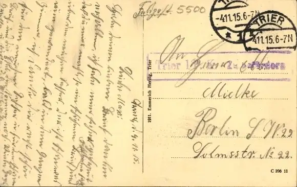 Zustand, siehe Scan, gelaufen, 1915 - ca 9 cm X 14 cm