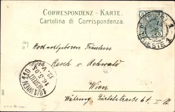 Zustand, siehe Scan, gelaufen, 1905 - ca 5 cm X 3 cm