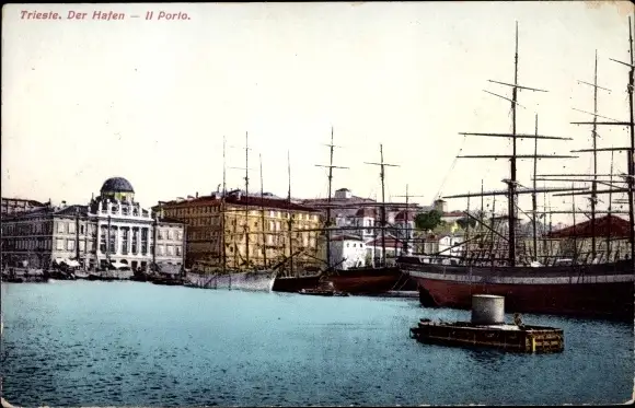 Ak Triest Trieste Friuli Venezia Giulia, Hafenpartie