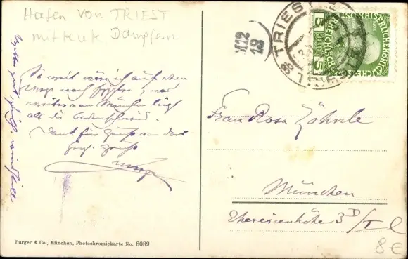 Ak Triest Trieste Friuli Venezia Giulia, Hafenpartie, Purger & Co Nr. 8089, Photochromie