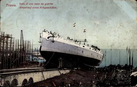 Ak Triest Trieste Friuli Venezia Giulia, Österreichisches Kriegsschiff, Stapellauf