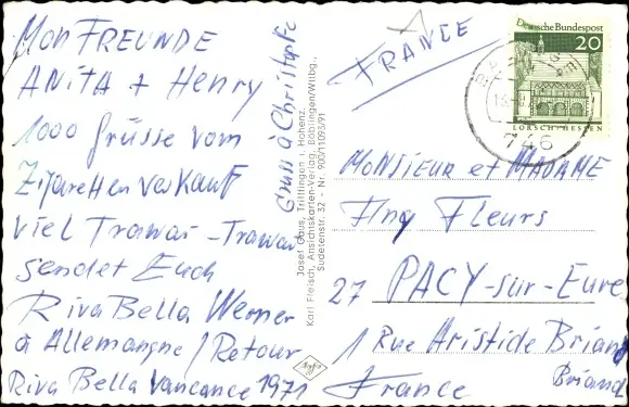 gelaufen, Knickspuren, Ecken bestoßen, Briefmarke beschädigt, sonst guter Zustand