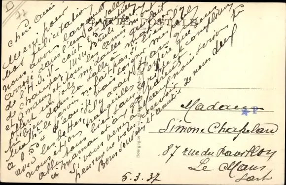 ungelaufen, datiert 1937, Rückseite beschrieben, sehr guter Zustand