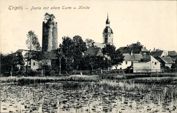 Ak Triptis in Thüringen, Alter Turm, Kirche