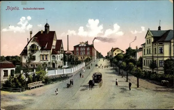 Ak Triptis in Thüringen, Bahnhofstrasse, Pferdekutsche, Häuser