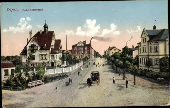 Ak Triptis in Thüringen, Bahnhofstrasse, Pferdekutsche, Häuser