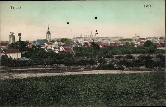 Ak Triptis in Thüringen, Gesamtansicht, Felder, Fabriken
