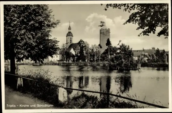 Ak Triptis in Thüringen, Kirche, Schlossturm, Stadtteich