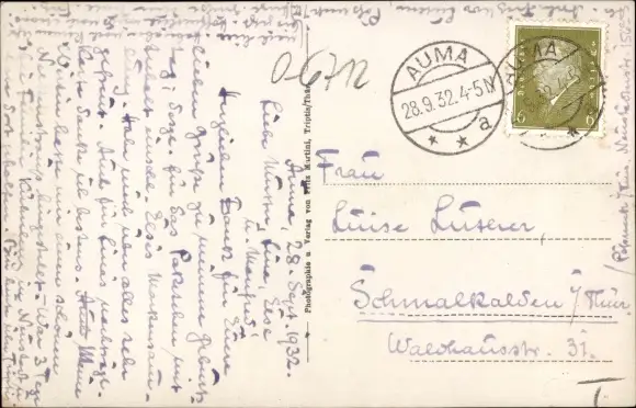 Zustand, siehe Scan, gelaufen, 1932 - ca 14 cm X 9 cm