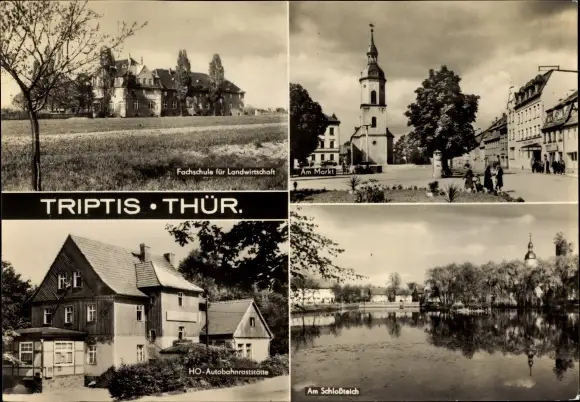 Ak Triptis in Thüringen, Markt, Schlossteich, Fachschule, Autobahnraststätte