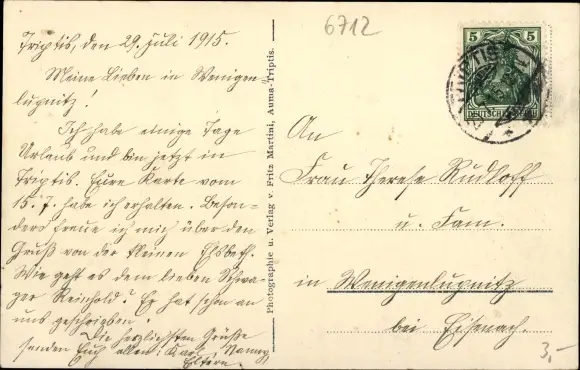 Zustand, siehe Scan, gelaufen, 1915 - ca 14 cm X 9 cm