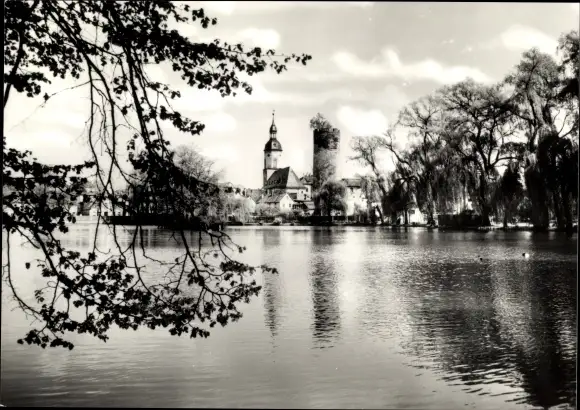 Ak Triptis in Thüringen, Schlossteich, Turm, Kirchturm