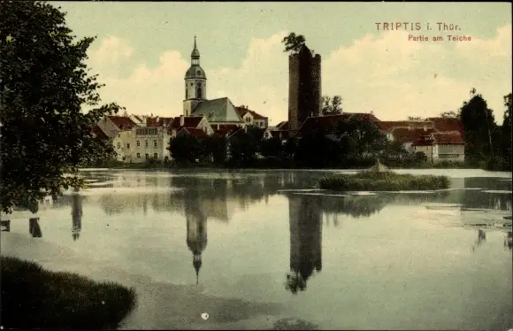 Ak Triptis in Thüringen, Stadt vom Teich aus gesehen