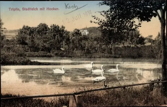 Ak Triptis in Thüringen, Stadtteich mit Hocker