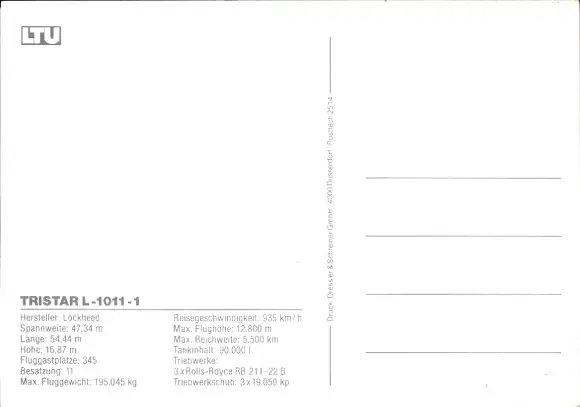 Ak Tristar L-1011-1, Passagierflugzeug, LTU